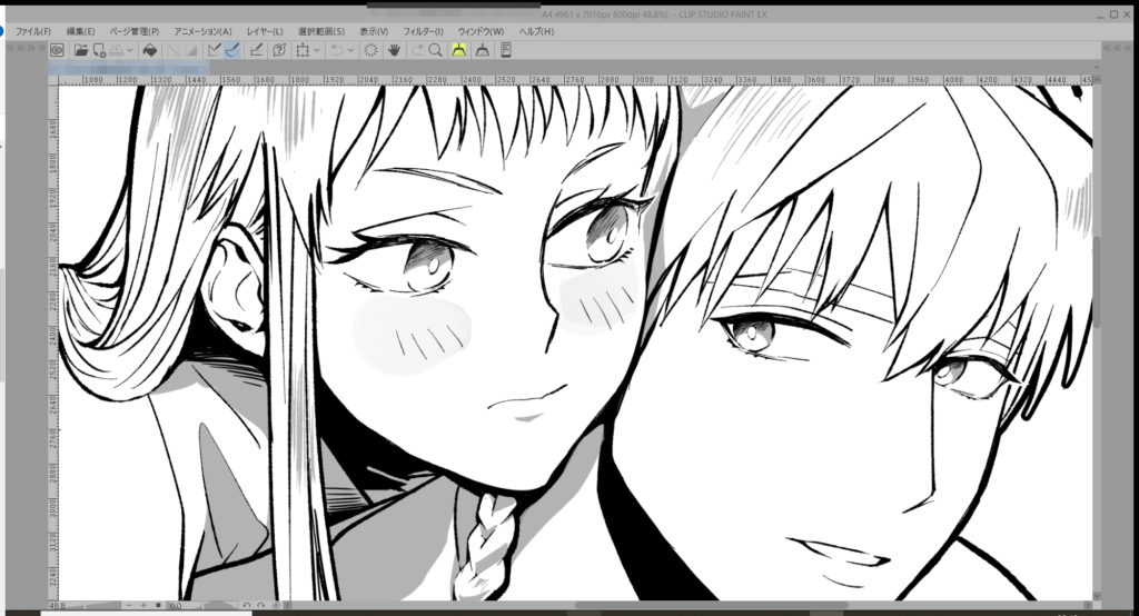 私は7年ほどクリスタで描いてますがこのタイミングでやっと手になじむペンツールが見つかりうれしくて(∩˃o˂∩)今回そのペンで描いてみました(筆圧弱い人向けのペン『びペン』)。