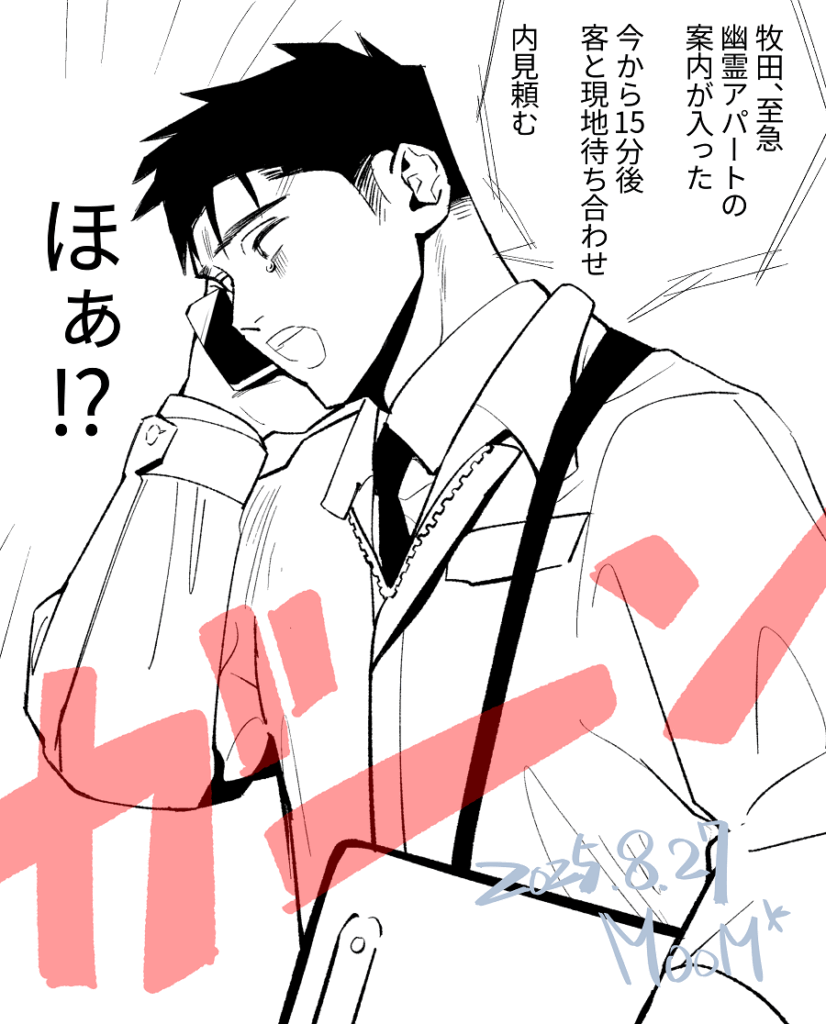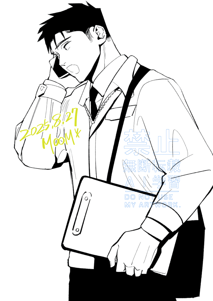 心の拠り所オリジナルキャラ(一次創作) 2025 9/06 一次創作 牧田薫 2025年9月6日 忘れてないよ。 私が大切にしてる君。 男性キャラに名前をつけ職業まで考えたのは君がはじめてだったかも。 でも、あまり喋らせる事が出来なくて。 力不足でごめんねといつも思っています。 牧田薫君。 オバケ怖いマン。幽霊アパートの近隣へ営業に出ていた牧田薫に先輩からの電話。 元絵。気に入ってます。今の時代なら手に持っているモノはタブレットでもいいかもね(*´▽`*) 一次創作 牧田薫 当記事共有ボタン URLをコピーしました! コメント コメント一覧 (4件) チルさんの牧田くんはツーブロのうなじとかもみ上げとか男らしくて(事故物件で涙目だけど!🤣)優しそうでやっぱり格好良いなぁ🥰 またちょいちょい拝めるともれなく私が喜びます(〃´ω`〃)ホクホク🩷 返信 たまにしか描かないけれど私の好きが詰まっている子です。だからそう言ってくださるのがすごくありがたいです。少しずつだけど自分の中の理想のカッコ良さに近づけられるよう描き続けるのでこれからもよろしくお願いします🐹💖 牧田ちゃーん☺️💖 あの時、助けていただいたイカです🦑✨✨ありがとうございます☺️✨✨ 牧田ちゃんとイカタル*ちゃんの絵を見返す度に幸せな気持ちをいただいてます💖 生まれてきてくれてありがとう✨✨ 返信 タルタル*さんの第一声に笑ってしまいました! (🦑*さんのセリフに反応して思わず牧田ちゃんの背後から登場) 私こそ、あの時助けていただいたゴリラです🦍✨ズイ! 場面を想像するだけで面白すぎました(*´▽`*)フフ✨✨ タルタル*さんHPに遊びにきてくれてありがとうございます。感謝✨✨ コメントする コメントをキャンセルコメント ※ 名前 ※ メール ※ サイト 次回のコメントで使用するためブラウザーに自分の名前、メールアドレス、サイトを保存する。 数字で答えを入力してください:two × 5 =